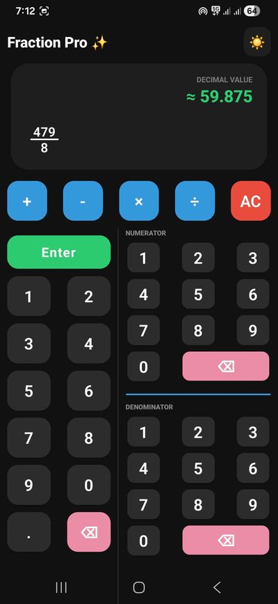 Fraction Pro – Easy Calculator is a simple yet powerful fraction calculator designed to make everyday math easy and accurate. It helps users calculate fractions, mixed numbers, decimals, and whole numbers with ease. With an intuitive interface and clear results, Fraction Pro is perfect for students, teachers, professionals, and anyone who works with fractions regularly.